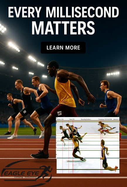 Can integrate a second camera for Line-Scan timing at any time in the future. Easily integrates with third party Meet Management software, mobile apps, portable and stadium display boards.